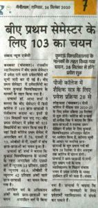 बी ए प्रथम वर्ष 2020-21 में प्रवेश हेतु सूचना-